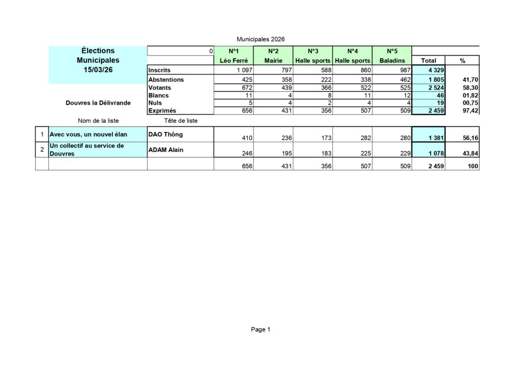 Résultats du scrutin du dimanche 15 mars